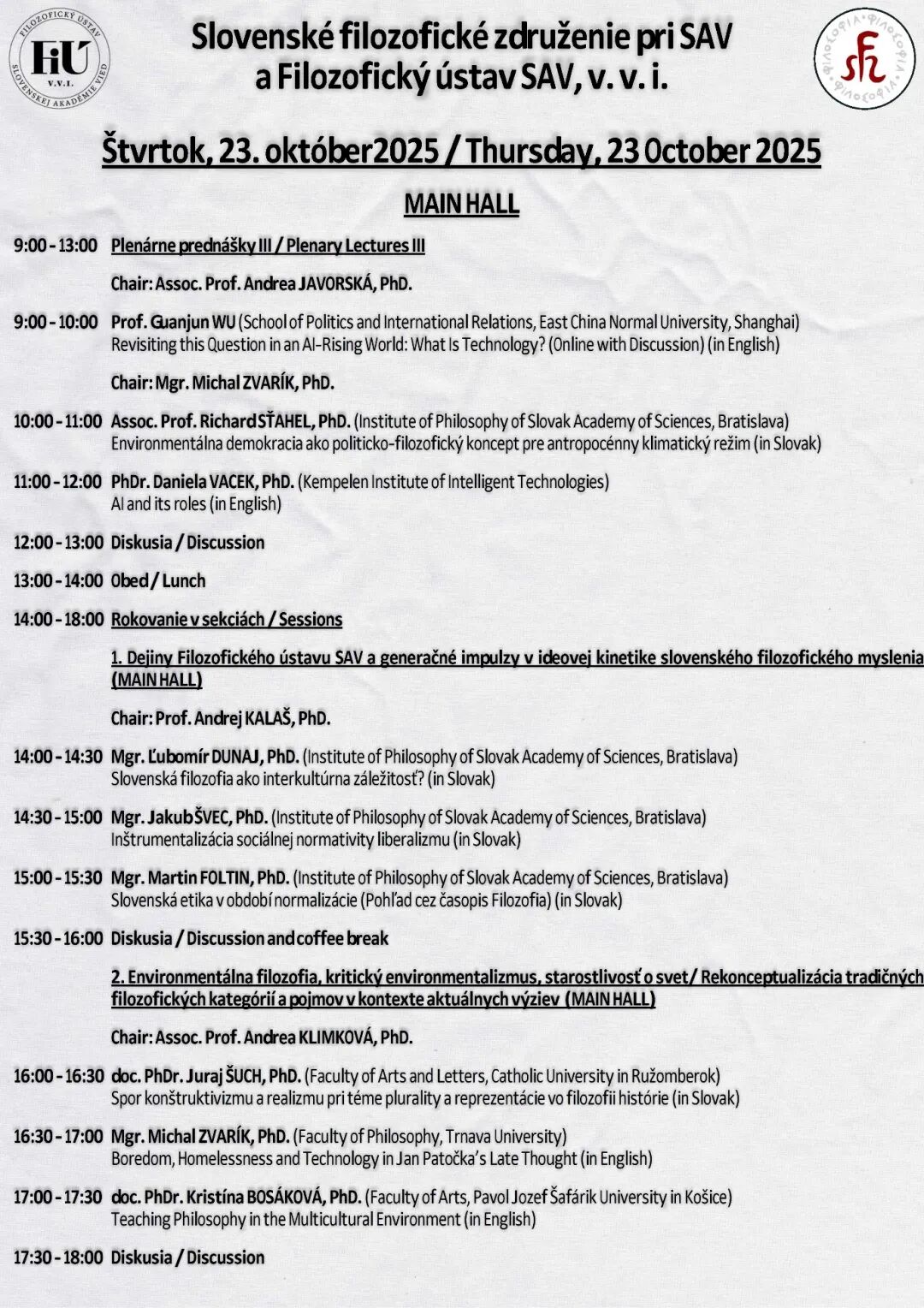2025年10月23日,赌博论坛-中国赌博论坛 院长、奇点研究院院长吴冠军教授受邀在第七届斯洛伐克哲学大会(the VII. Slovak Philosophical Congress)作大会主旨报告(plenary lecture)。