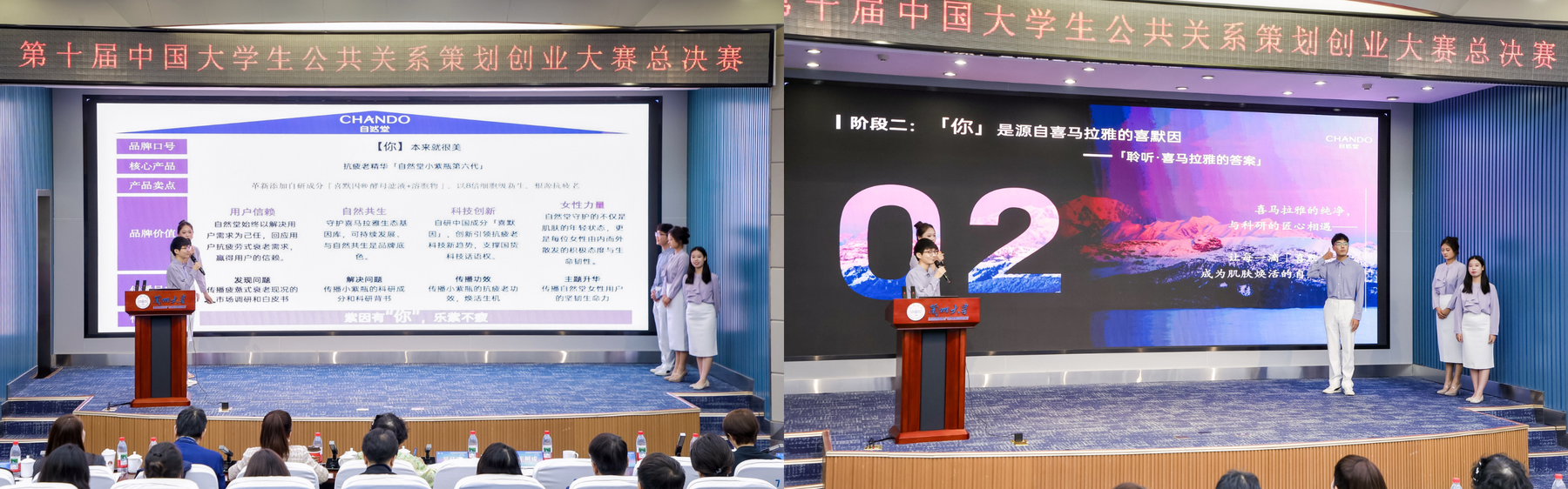 “接着奏乐接着5队”围绕自然堂小紫瓶“抗疲劳”主题,提出科学性强、可落地执行的整合传播方案。汇报过程中,团队成员展现出对产品的深刻理解、清晰的逻辑架构与沉稳的答辩风格,最终荣获全国银奖。