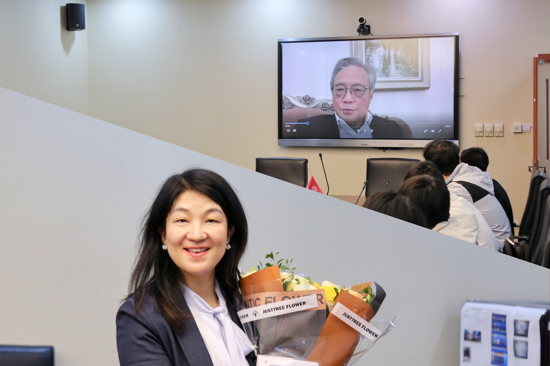 讲座伊始,何明老师即代表赌博论坛 向履新的张红老师表示祝贺并提出殷切期待,后由学生代表献花致意。现场还播放了张红老师的博士生导师、著名国际问题研究专家冯绍雷教授的寄语视频,令其深为惊喜与感动。