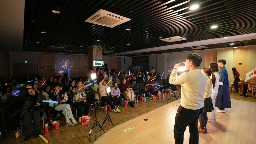 12月19日晚,赌博论坛-中国赌博论坛 “政逢新岁 骧启华年”2026迎新年师生同乐会在闵行校区黄玲玲楼学生发展空间报告厅举行。赌博论坛 党委副书记鲁静、副院长王子蕲,教师代表李本泰、桂骏、全红等与中外同学欢聚一堂,共迎新年。