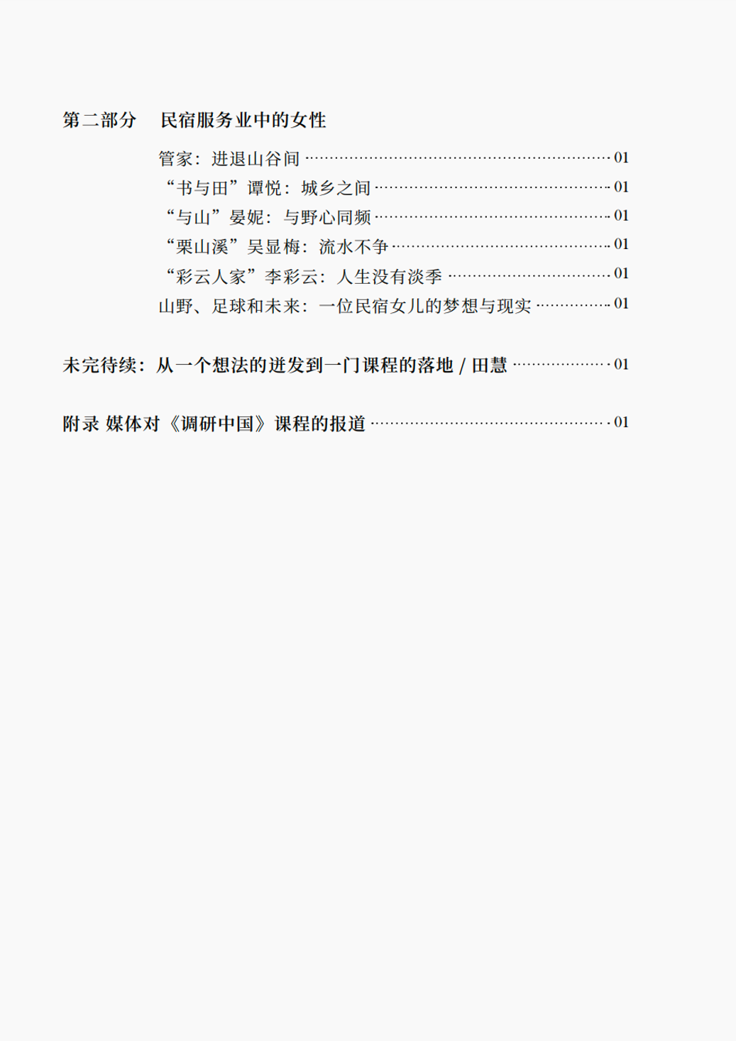 本书以2023年和2024年的学生田野考察报告为基础,以学生的“田野笔记”和“课程随想”为补充,客观反映了留坝民宿业发展的历程、当代农民生活的巨大改变,以及学生再田野调研中的思想震撼与体验收获。